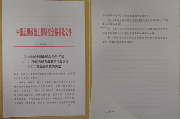 近日,中國思想政治工作研究領域最高榮譽--2020年度優秀政研成果出爐。由招金礦業股份有限公司提報的《增強全媒體建設意識,構建優秀企業品牌》獲2020年度中國思想政治工作研究會三類優秀研究成果,這是2020年度黃金行業唯一獲獎成果,也是我市多年來僅有的在該領域獲得的最高榮譽成果。
