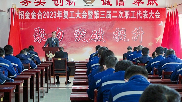 1月28日上午,招金金合召開了復(fù)工大會(huì),總經(jīng)理溫永杰從安全環(huán)保、生產(chǎn)經(jīng)營、攻堅(jiān)突破等方面總結(jié)回顧了公司取得的一系列成績,同時(shí)在部署2023年工作中提出:全體干部員工要堅(jiān)決落實(shí)開工第一件事就是“講安全、抓安全”的要求,并將其作為復(fù)工復(fù)產(chǎn)的先決條件,嚴(yán)格履行各級(jí)安全主體職責(zé),為公司2023年生產(chǎn)經(jīng)營再攀高峰,起好步,開好局。